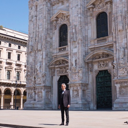 12 апреля, в день католической Пасхи, итальянский оперный и эстрадный певец Андреа Бочелли устроил концерт в пустом Миланском соборе — кроме него там был только органист Эмануэле Вианелло. Таким образом певец хотел поддержать Италию и весь мир в борьбе с коронавирусом.