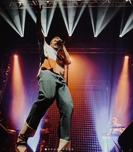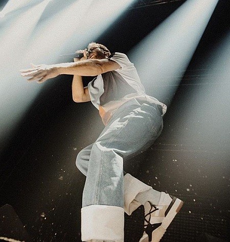 В ходе выступления он активно танцевал и уже ближе к финалу оголил торс прямо на сцене.