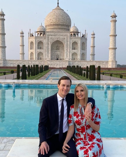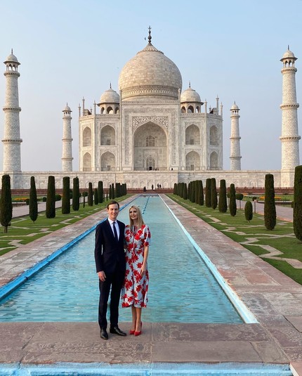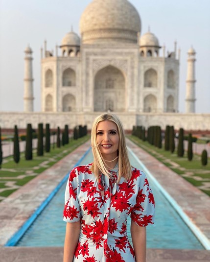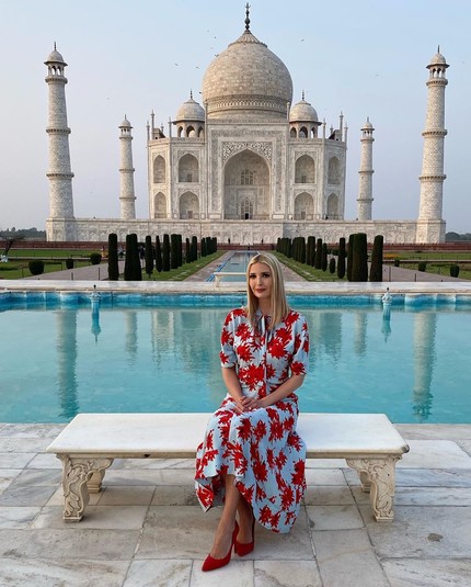 Иванка Трамп вместе с мужем Джаредом Кушнером, отцом Дональдом и его женой Меланией находится с официальным визитом в Индии, где проведет двое суток. В первый день своего пребывания в стране танцев и карри старшая наследница Трампа приехала в Тадж-Махал в платье марки Proenza Schouler.