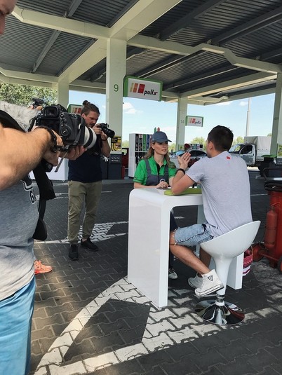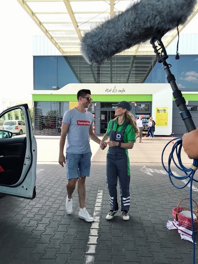 Оля красила ребятам ногти, мыла стекла их очков, собственноручно стирала грязные футболки дальнобойщиков и одевала в новые, давала в дорогу «паек» – лук, кабачки и тыкву, посевала пшеницей и конфетами на добрый путь! Это не весь перечень необычных услуг, которые ведущая Ольга Фреймут оказывала на бензозаправке в Киеве в течение всего дня.