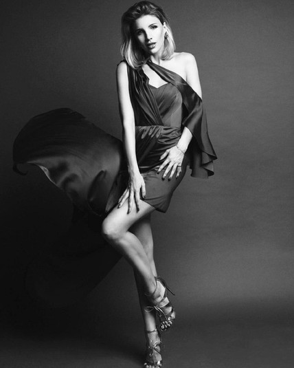 В кадре популярный украинский модельер позирует в откровенном платье белого цвета с имитацией тросов вдоль. Также можно заметить полное отсутствие нижнего белья на девушке. Глаза дизайнер скрыла за солнцезащитными очками.