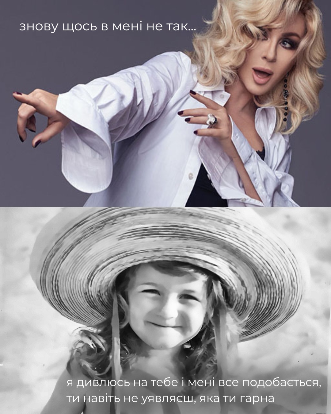 «Знову щось у мені не так», – зазначила артистка. Та водночас сама ж собі відповідає: «Я дивлюсь на тебе й мені все подобається, ти навіть не уявляєш, яка ти гарна».