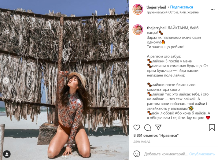 Украинская певица и блогерша Jerry Heil, которая недавно дефилировала в откровенном бикини, продолжает радовать своих поклонников пикантиним контентом.