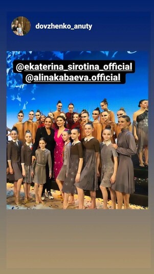 Российская пресса сообщает, что Кабаева появилась «в розовом платье с глубоким декольте и с георгиевской лентой на груди». На сцену вышла под песню «День победы» в исполнении Льва Лещенко и произнесла речь. Правда, СМИ скромно умалчивают, что стоимость этого наряда из новой коллекции Alessandra Rich – 1440 евро (47 171 гривна). Тема спортивного мероприятия была посвящена войне, вернее победе в прошлом кровопролитном противостоянии. Юные гимнастки одеты в костюмы а-ля советский солдат.