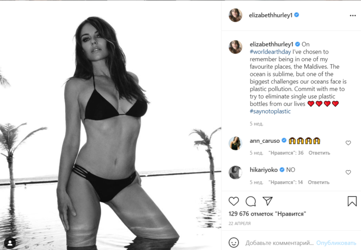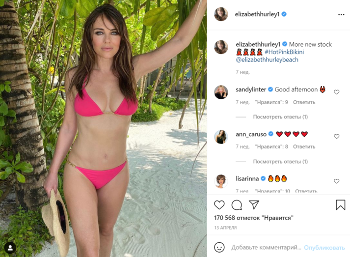 Модель объяснила, что во время карантина, введенного из-за пандемии коронавируса, ее физическая активность сильно снизилась, и она набрала пару килограммов. «Самая первая самоизоляция далась мне с большим трудом. Мы были очень напуганы. Я жила в доме с матерью и ее сестрой, им обеим по 80 лет, и у них очень слабый иммунитет. Мы очень редко выходили из-за страха заболеть. Однако со временем я все же начала ходить за покупками, что стало положительно отражаться на моем внешнем виде», — посмеялась Херли.