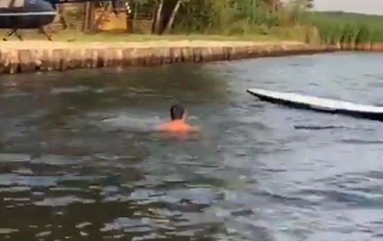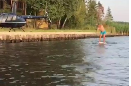 На видео видно, как Кличко уверенно преодолевает несколько метров, но потом весло ломается, и Владимир падает в воду.
