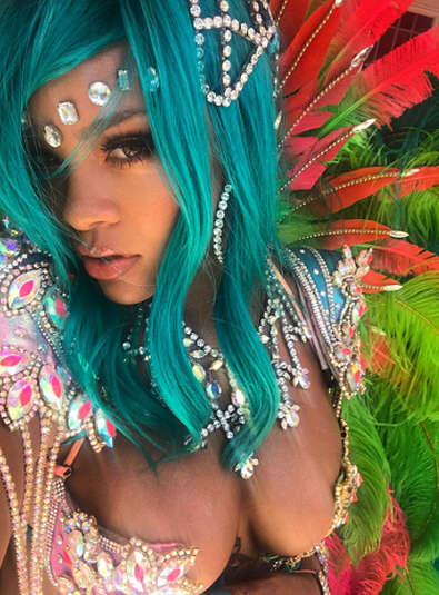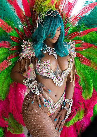 Как павлин: Рианна в откровенном костюме произвела фурор на карнавале на Барбадосе