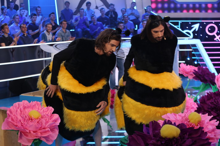 На что вы готовы ради победы? Как насчет переодеться в костюм гигантской пчелы? А потом с помощью липучки на вашей пчелиной попе «собирать» бутафорскую пыльцу с огромных цветов? Все это в финальном испытании шоу «Хто зверху?» делали участники мужской и женской команд. Да еще и на время! Веселые пчелки Мишель Андраде, Слава Каминская, Анастасия Кожевникова и Леся Никитюк очень старались собрать больше пыльцы, чем суровые шмели Эдгар Каминский, Антон Савлепов, Владимир Дантес и Сергей Притула.
