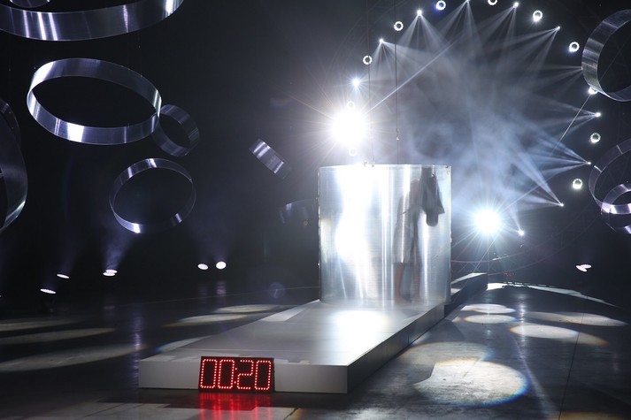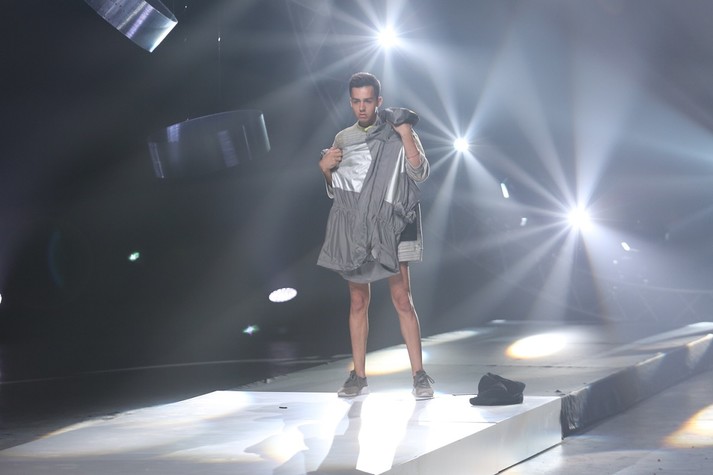 Во время дефиле у каждого участника было два образа. В одном они выходили на подиум, а во втором закрывали свою проходку. На ребят опускали ширму-цилиндр, в которой на вешалке висел их второй look. Переодеться нужно было максимально быстро – всего за 20 секунд. Почти как в армии.