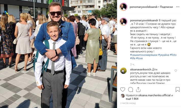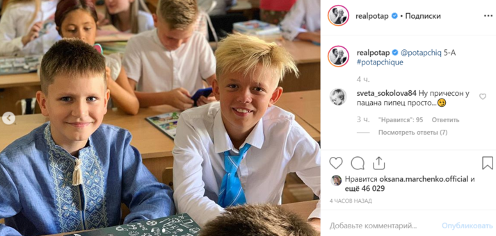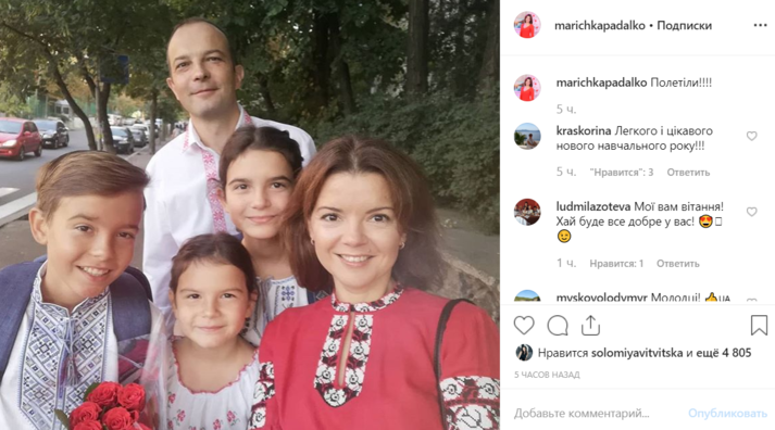 В Киеве, 2 сентября, знаменитости и политики повели своих детей в школу. Продюсер Потап запостил в фотоблоге снимок, где предстает с бывшей женой Ириной Горовой и их детьми – Андреем и Натальей. Они провожали мальчика в пятый класс. Маричка Падалко показала, что семьей в полном составе пошли в школу в вышиванках. Певец Александр Пономарев повел своего сына Сашу уже в 7 класс. А вот сын президента Украины сегодня пошел в первый класс.