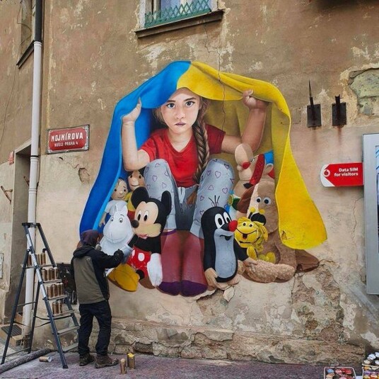 В чешской Праге также в марте был открыт символический мурал. На нем – украинская девочка пытается сохранить мир, представленный в виде героев мультфильмов. Накрывает их сине-желтым флагом (фото 7). «Новый мурал в Праге. Обратите внимание на игрушки, которые девушка закрывает желто-голубым флагом: Мики Маус (США); Крит (Чехия); Муми-тролль (Финляндия); Обеликс (Франция); Болек и Лолек (Польша); пес Битцер (Великобритания); пчелка Мая (Германия)», – прокомментировали пользователи сети.