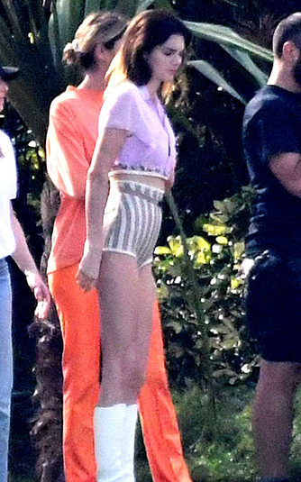 Наряд состоял из кроп-топа и микро-шорт, которые, по мнению поклонников, походили на старомодного вида бикини. Сверху Кендалл надела светло-сиреневую укороченную блузку. Белые кроссовки-гольфы эффектно завершили звездный образ.