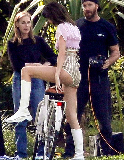 Папарацци сфотографировали Кендалл, когда та садилась на свой велосипед