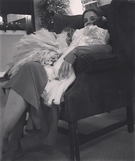 Но в ходе праздника малышка утомилась и заснула прямо на груди Кэти, а актриса, в свою очередь, запечатлела этот трогательный момент на камеру.