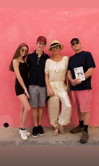 Традиционным семейным снимком Кэтрин Зета-Джонс поделилась в сторис Instagram. На фото Кэтрин в темных очках, одетая в легкие белые брюки, футболку, соломенную шляпу и эспадрильи, вместе с мужем и детьми позируют на фоне колоритной ярко-розовой стены.