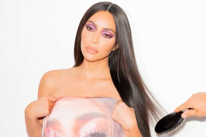 Ким Кардашьян без белья нарядилась в простыню со своим портретом (фото)