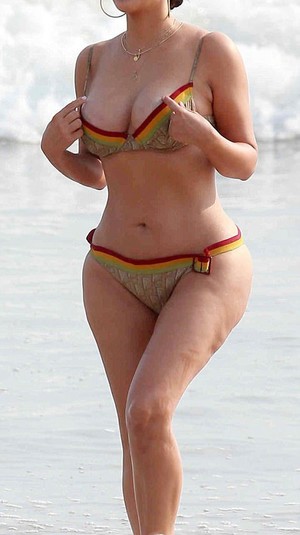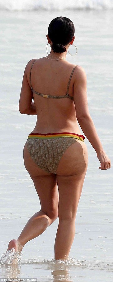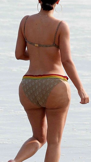 Звезда прогуливалась по берегу океана в ретро-бикини марки Christian Dior. Красавица демонстрировала ягодицы и подтянутый пресс. Папарацци успели поделиться фото с таблоидом, что опубликовал фотографии без фотошопа.