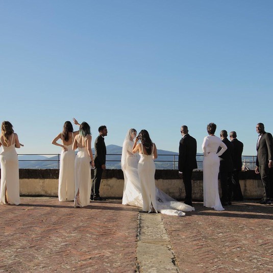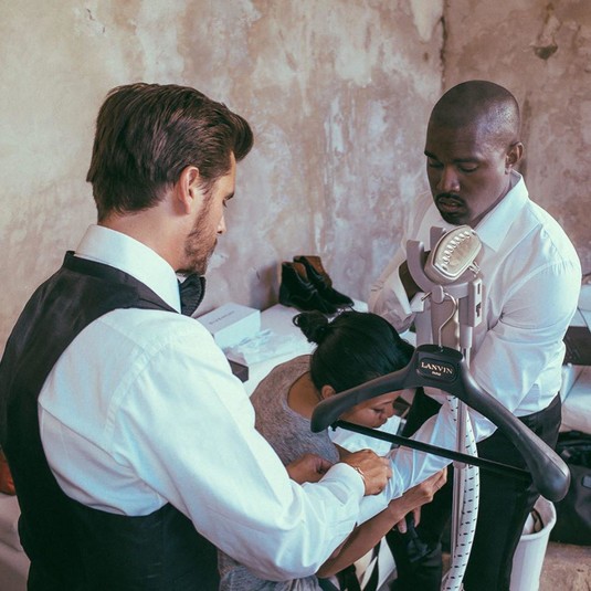На фотографиях запечатлены жених Канье Уэст, выбирающий костюм для церемонии, прогуливающиеся на фоне живописной Флоренции родственники и друзья Ким Кардашян, а также другие интересные детали торжественного дня.