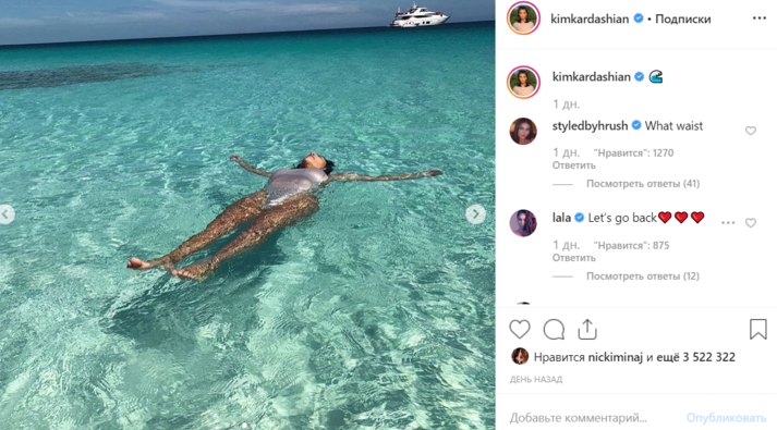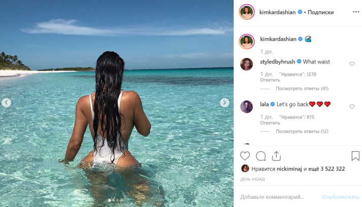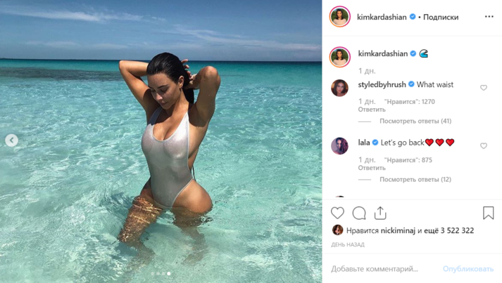 Поклонники оценили провокационные снимки Кардашьян. «Ким, как всегда, выглядишь роскошно», «Я понимаю, что тут не обошлось без фотошопа, но все равно – какое тело», «Если бы я выглядела так же сексуально во время купания, но нет», – написали они в комментариях.