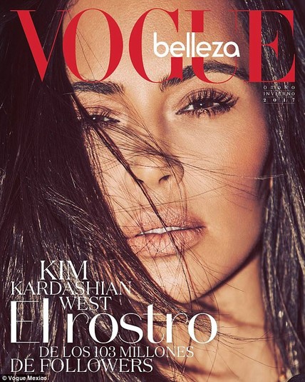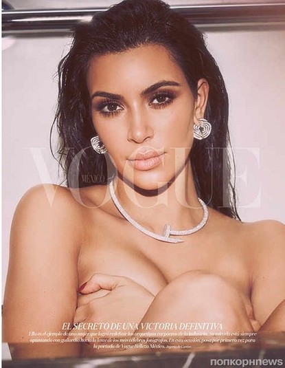 Хотя октябрьский выпуск Vogue Mexico посвящен новинкам бьюти-индустрии и актуальным трендам макияжа, Ким Кардашьян, в лучших своих традициях, всё равно появляется в кадре топлесс.