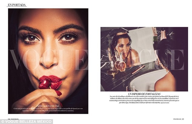 На этот раз Ким, которая в последние недели неоднократно появлялась на страницах глянца, снялась в фотосессии для мексиканской версии Vogue.
