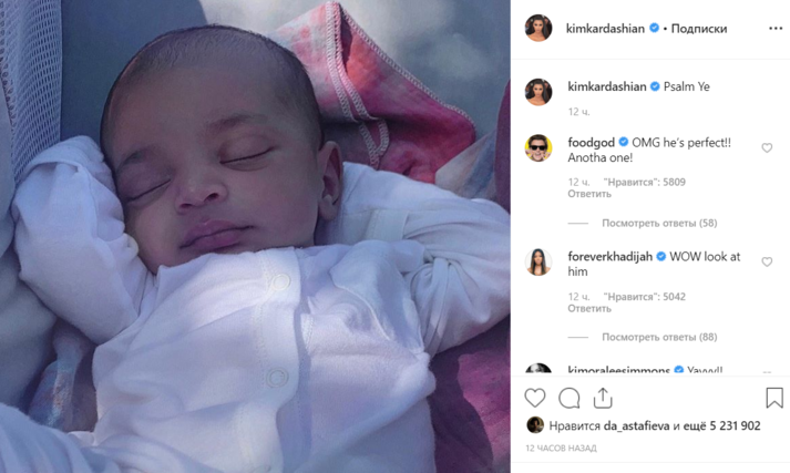 Инсайдер поделился с порталом People, что Канье Уэст с женой присутствовали в больнице во время родов. По словам источника, младенец «очень милый и похож на Ким». Трое детей поприветствовали брата. Старшая дочь Норт, которой исполнилось пять лет, казалась самой взволнованной.