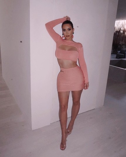 Супруга 43-летнего рэпера Канье Уэста позировала в кроп-топе нежно-розового цвета с глубоким вырезом. Соблазнительный образ дополнила ультра-короткая юбка с изящным вырезом на бедре. Ким сделала экспрессивный макияж с акцентом на глаза. Она придала губам нюдовый оттенок.