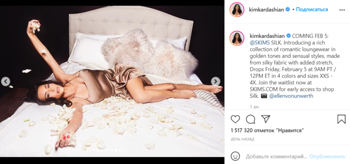 Ким Кардашьян в шелковом белье заставила мужчин растаять (фото)