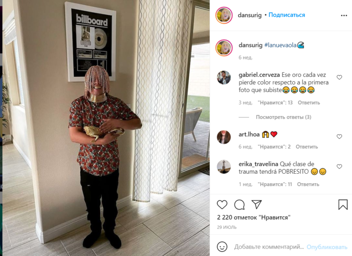 «Правда в том, что я хотел сделать что-то другое, потому что другие красят волосы. Надеюсь, теперь все не станут меня копировать. Это мои волосы. Золотые волосы. Первый в истории рэпер, которому имплантировали золотые волосы», — рассказал Dan Sur в своих видео в Instagram.