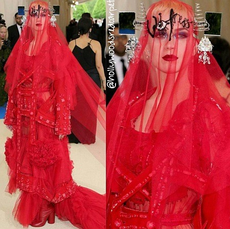 Также большое внимание пользователей привлекла своим нарядом певица Кэти Перри. В певице увидели идеальную невесту для Битлджуса из одноименного фильма Тима Бертона.