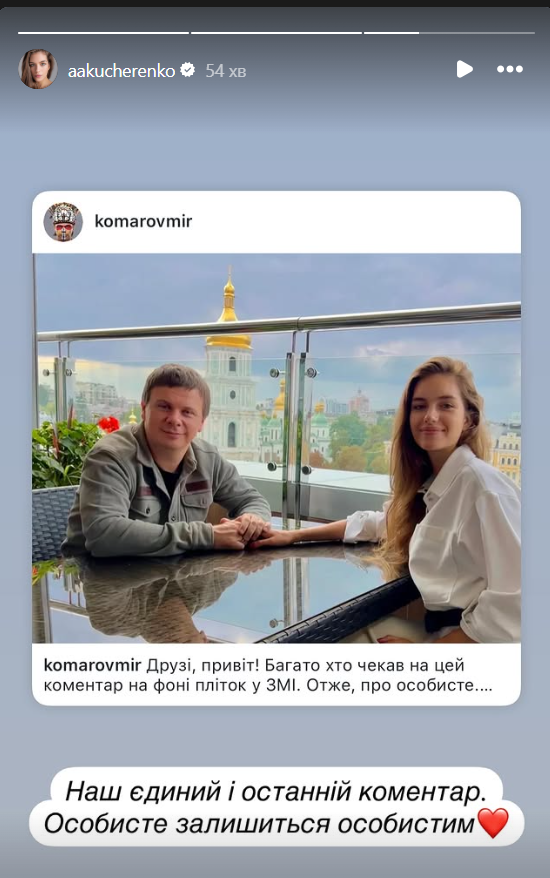 Водночас дружина Комарова Олександра Кучеренко зауважила, що «особисте залишається особистим».