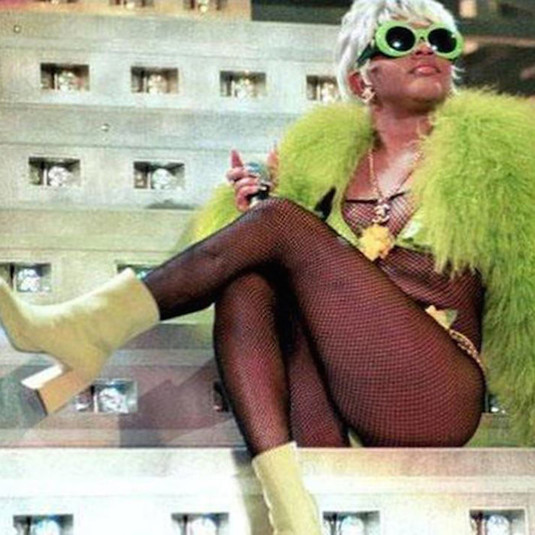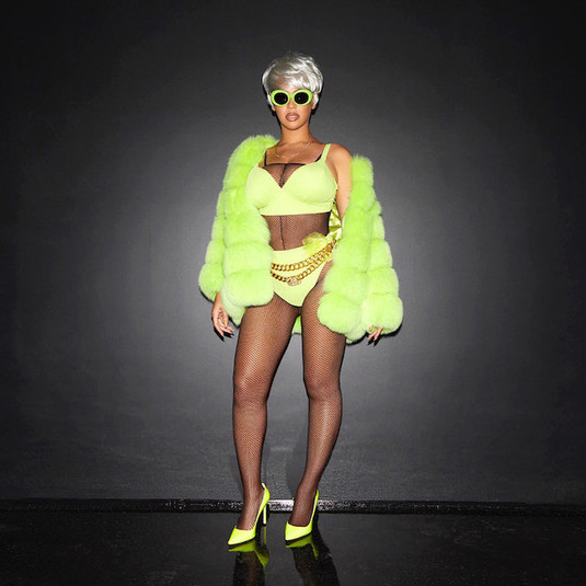 В этот раз певица побила все рекорды. Она надела белье, шубу, туфли-лодочки и очки «кошачий глаз» кислотно-зеленого цвета.