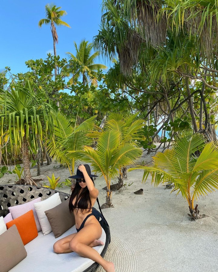 Кортни вдохновилась живописным местом и устроила яркую фотосессию. Мама троих детей примерила пикантное черное бикини. Лиф подчеркнул пышное декольте Кардашьян, а тонкие трусики с высоким вырезом сделали акцент на подтянутых бедрах инстадивы.