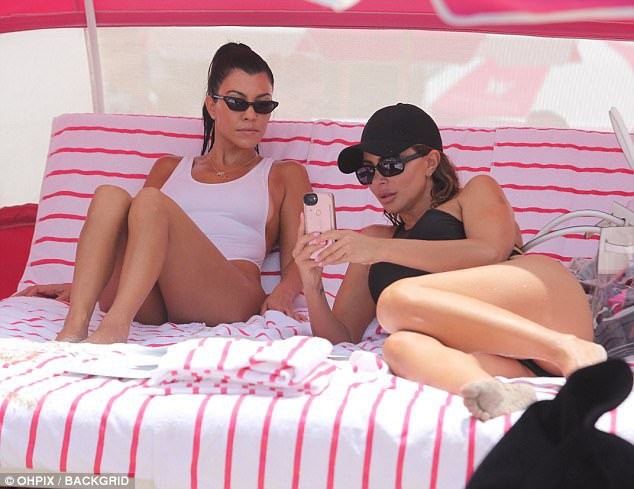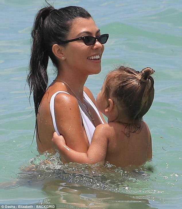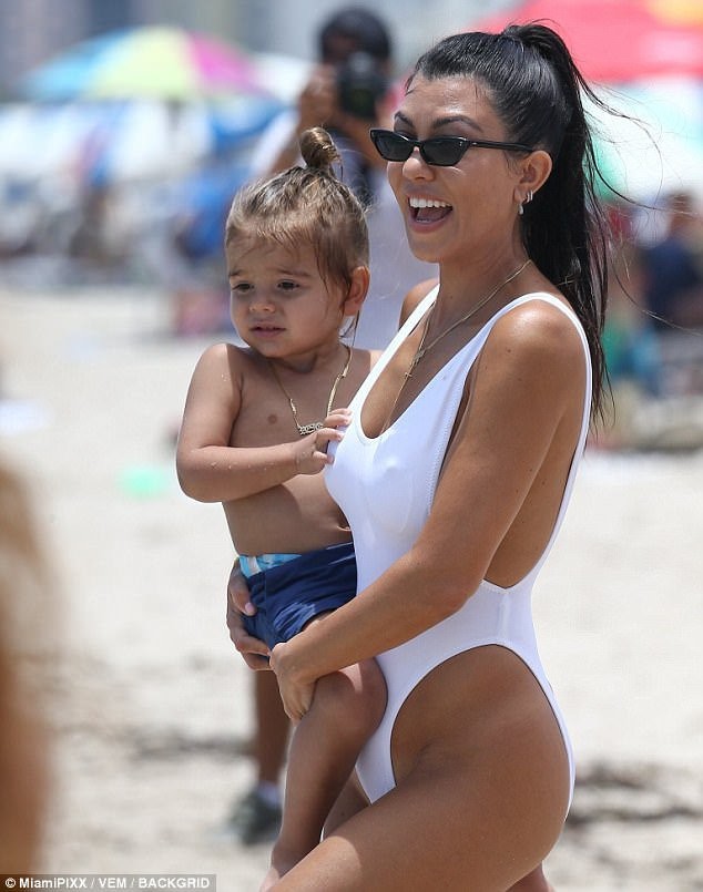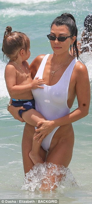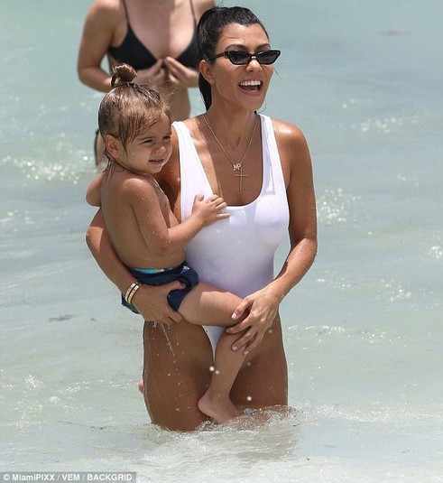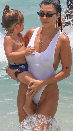 Красавица нарядилась в белое бикини от Norma Kamali, которое едва прикрывала интимные места звезды. Кортни развлекалась в волнах океана вместе с сыном Рейганом и дочерью Пенелопой. Компанию семье составила подруга звезды реалити-шоу Ларса Пиппен.