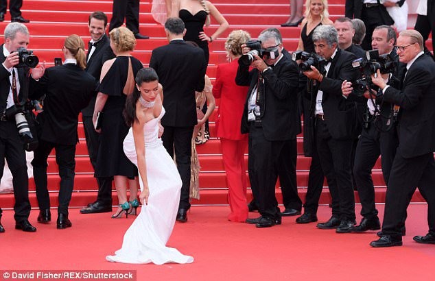 Свой образ Белла дополнила массивным кулоном с сапфиром и босоножками. В таком виде она посетила показ фильма Арно Деплешена «Призраки Исмаэля», который открыл фестиваль. Отец модели, миллиардер Мохаммед Хадид, сопровождал ее на красной дорожке.