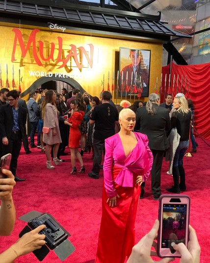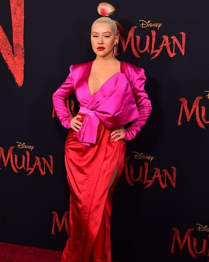 39-летняя американская поп-звезда Кристина Агилера произвела фурор в Голливуде. Она побывала на премьере фильма «Мулан» в лос-анджелесском театре «Долби». Кристина облачилась в модное розово-красное платье из атласа. Экстремальное декольте с бантом акцентировало всеобщее внимание на пышной груди артистки. Разрез до бедра едва не оголил пикантные части ее тела.