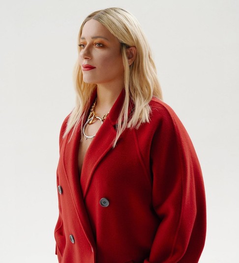 На втором снимке Наталья запечатлена в эффектном красном пальто Barbara Bui с оригинальным массивным колье. На веках – золотистые тени. На губах играет красная помада.