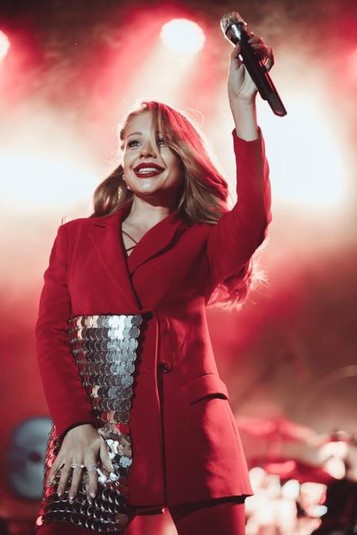 На днях артистка выступила в столице и ее образ был невероятно ярким и стильным. Звезда появилась в красном удлиненном пиджаке с металлическим декором, который выгодно подчеркивал точеную фигуру Кароль.