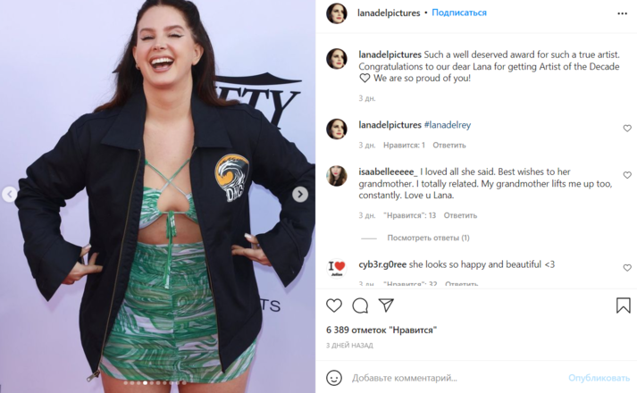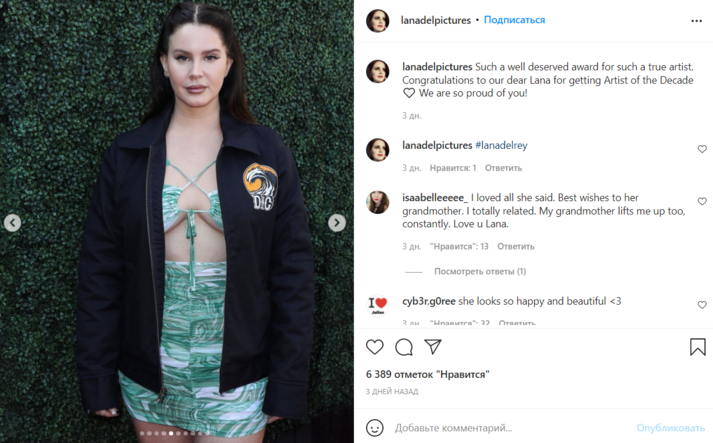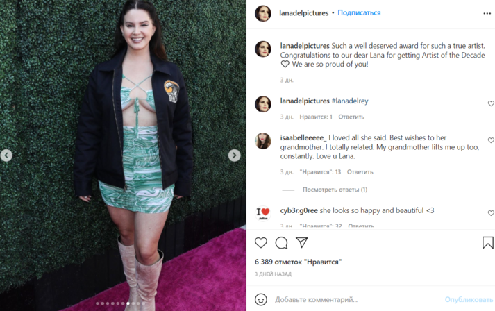 На бранч Лана Дель Рей пришла в повседневном платье Shein с принтом за 18 долларов. Поверх него звезда надела мешковатую черную куртку, а обулась в высокие замшевые сапоги, сообщил Papermag. Грудь поправившейся певицы буквально расплылась под платьем, однако Лана была невозмутимой и очень радостной.