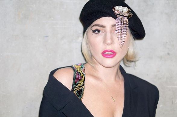 Звезда надела темно-синий блейзер поверх голого тела, так что глубокий разрез слегка приоткрыл грудь, не выходя за рамки приличия. Но и это еще не все, несмотря на короткую длину Леди Гага встала в вызывающую позу, слегка оголив бедра. На ноги звезда надела роскошные ботфорты Versace, декорированные крестами, инкрустированные камнями. Свой образ она дополнила черным беретом с внушительной брошью. Макияж с ярко-розовой помадой прекрасно контрастировал с темным луком.