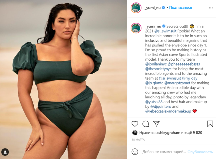 Юми Ну уже более 10 лет работает моделью плюс-сайз, и теперь она дебютирует на страницах популярного журнала Sports Illustrated.