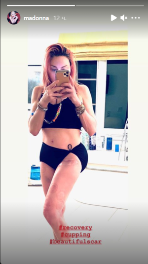 Американская певица Мадонна вновь показала постоперационный шрам на своем теле на откровенном фото. Соответствующий снимок появился в сторис ее Instagram-аккаунта.