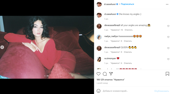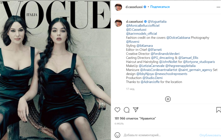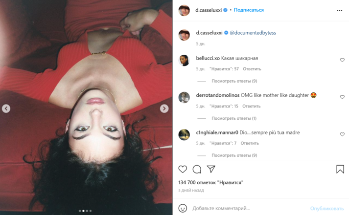 На аккаунт наследницы Беллуччи и Касселя подписано 550 тысяч человек. Они считают, что у девушки большое будущее.