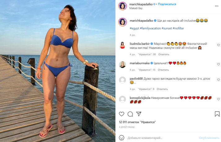 Популярная украинская телеведущая Маричка Падалко продолжает публиковать в своем Инстаграме фото с первого за 10 лет отпуска за границей.