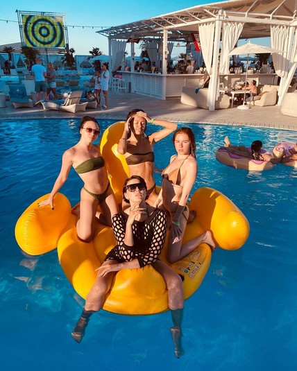 При этом на снимке видно не только популярную артистку, но и ее подружек-танцовщиц. Девочки сидят на большом резиновом матрасе, и спереди их расположилась Maruv в черном купальнике и светлой шляпе. Новое фото артистка опубликовала на своей странице в Instagram.