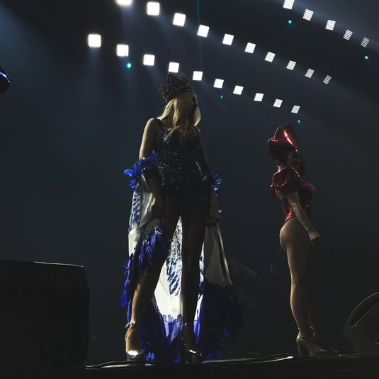 Также певица примерила эксклюзивный наряд от дизайнера Анны Бублик – откровенное мини-платье со стразами и накидку с перьями. Свой «королевский» образ певица дополнила серебряными босоножками на толстой платформе.