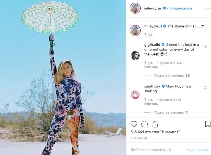 В последнее время Майли Сайрус стабильно радует поклонников новыми постами в Instagram