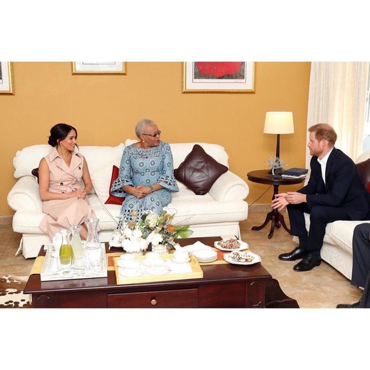 Меган Маркл и принц Гарри встретились с 73-летней Грасой Машел. Вдова Нельсона Манделы — известный гуманист и адвокат по правам женщин и детей. Граса в 1997 году была удостоена почетного звания британской дамы. Принц Гарри познакомился с ней в 2015 году во время поездки в Южную Африку. В последний раз они виделись в Лондоне в начале этого года. Он и Машел обнялись как старые друзья и тепло поприветствовали друг друга. Герцог Сассекский представил Грасе свою супругу.