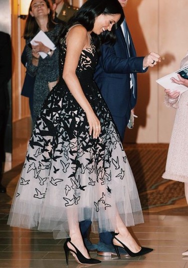 На беременной Меган было пышное творения Oscar de la Renta стоимостью в почти 13 000 долларов.