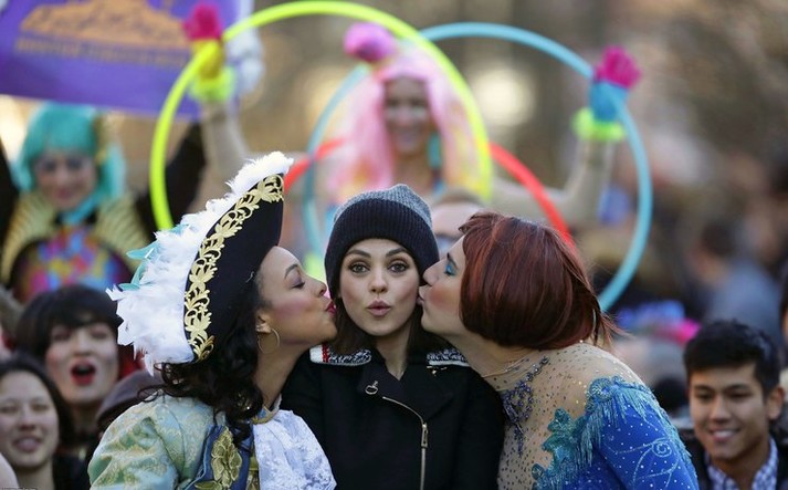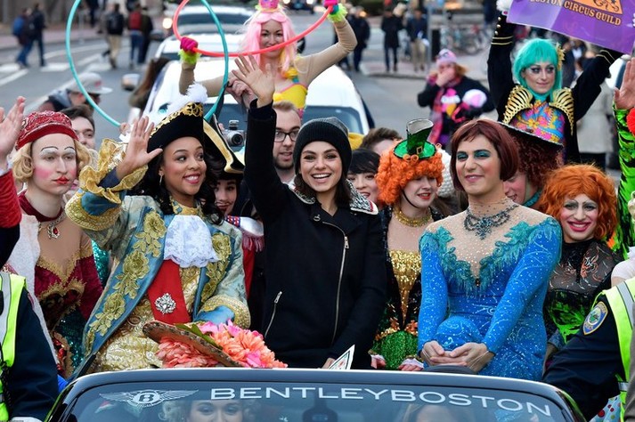 Пока голливудские звезды ждут ежегодную церемонию «Оскар», Мила Кунис уже получила награду. Актриса стала участницей парада в Массачусетс вместе с театральным сообществом студентов Гарварда. Звезда поднялась на сцену, где выполнила несколько забавных трюков и спародировала медведя из фильма «Третий лишний», в котором исполнила одну из главных ролей.